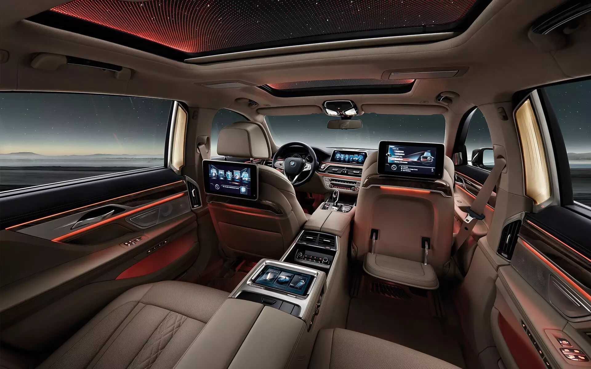 一旦置身车内,即刻被诸多创新和豪华空间感所包围。全新BMW 7系的头等舱级后排独立座椅,其座椅和靠背角度均可单独调整,人性化设计理念为乘坐者打造最大化舒适性;后排乘客的腿部空间宽大舒适,前排靠背上电动延伸的脚凳能够进一步增加舒适度。副驾驶座可向前移动90毫米,头枕也可向下折叠,使后排空间最大化,也使前方一览无遗。