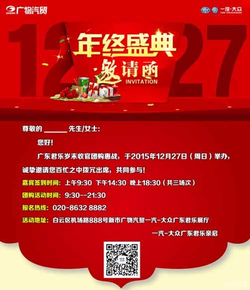 活动主题:一汽-大众广物君乐店年终盛惠特卖日