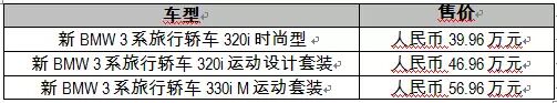 新BMW 3系旅行轿车共提供3款车型,即日起可通过全国经销商进行预订,建议零售价为: